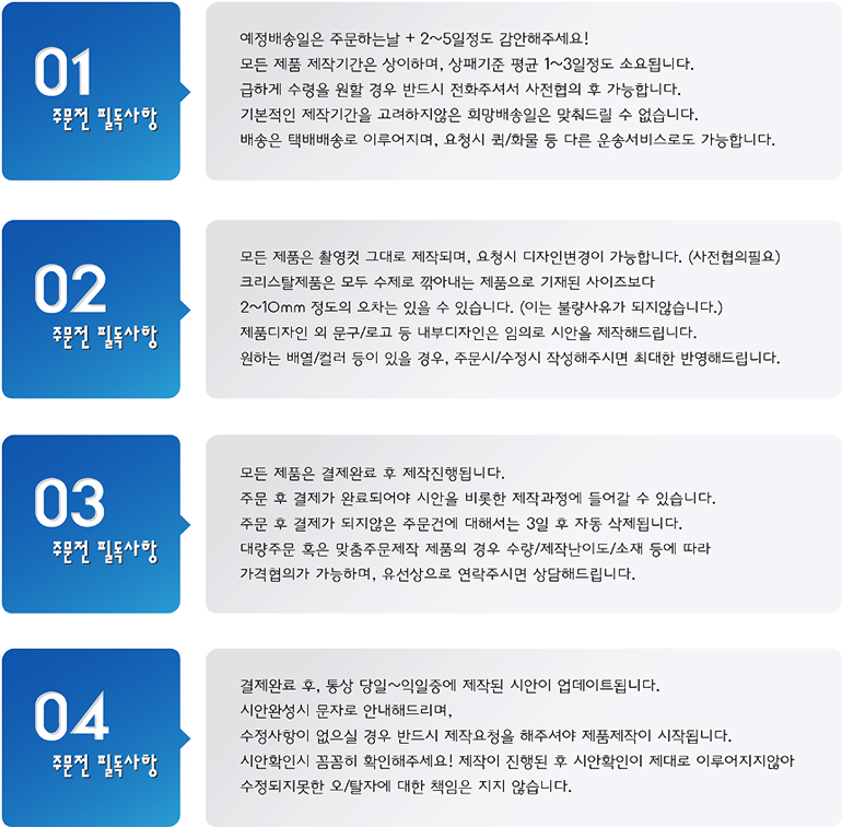 - ÁÖ¹® ½Åû ÈÄ ÇØ´ç ¹°Ç° ´ë±ÝÀ» ¼Û±ÝÇØ ÁÖ½Ã°í ¼Û±Ý È®ÀÎÀº ¹Ýµå½Ã À¯¼±À¸·Î È®ÀÎÇϽñ⠹ٶø´Ï´Ù. (ÁÖ¹® ÈÄ ¹ÌÀÔ±Ý, ¶Ç´Â ÀüÈ»ó ¼·Î È®ÀÎÀÌ ¾ÈµÉ °æ¿ì Á¦ÀÛÀÌ Áö¿¬µÇ´Â °æ¿ìµµ ÀÖÀ½)