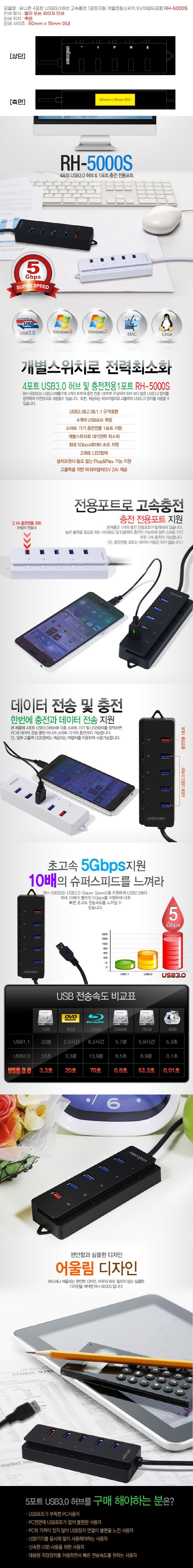 À¯´ÏÄÜ RH-5000S °³º° ½ºÀ§Ä¡ 4Æ÷Æ® USB 3.0 Çãºê ¹× ÃæÀü Àü¿ë 1Æ÷Æ®